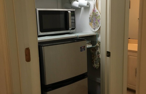 The studio consists one bedroom and full bath with kitchenette, such as microwave, hot water kettle, rice cooker, small toaster and fridge. The smart TV mounts on the wall. The room is closed off to the rest of house and giving a private space. The bottle water , coffee and tea are provided. The silver wares, dishes, wine glasses and other utensils are included as well. The outside grill and patio table are ready to use for cooking out. The laundry is in main building, but you always can use with asking. We added a memory foam mattress top on queen bed to make more softer. The guests allowed to take out, if someone like firm bed. The second bed is folding bed with full bedding supplies. The bedding are all cottons. We are not only changing the sheets, and also changing the duvet and blanket for each guests for hygeian issues.