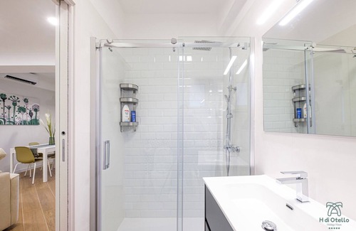 L'appartamento è un piccolo loft interamente ristrutturato con finiture ricercate e con molte comodità. Condizionatori e pompa di calore caldo/freddo, infissi in acciaio anti-intrusione, 2 tv a schermo piatto, angolo cottura con frigobar, terrazza coperta. La camera matrimoniale ha un piccolo bagnetto in camera con i servizi essenziali (esclusa doccia e bidet) e il piano inferiore è dotato di un comodissimo divano letto con materasso da 20 cm in memory. La struttura può ospitare fino ad un massimo di 4 persone.