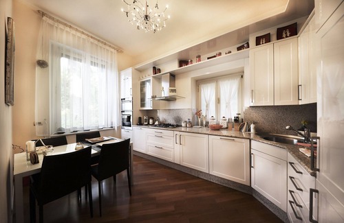 The other two apartments in the villa have the entrance from the back yard and use the elevator .There are second homes, used mainly during the weekends.