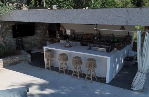 Enjoy the summer kitchen, gas and firewood barbecue, sink, small fridge, draft beer machine, outdoor counter for the aperitif at the edge of the water.