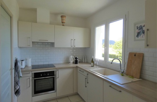 The surrounding large garden is enormously varied with lawn, pines, cypresses, fruit trees, olive trees, oleanders, rosemary, agaves and roses. You have a lot of privacy and beautiful panoramic views from the house or garden to Narbonne (25 km away). In the garden are birds, butterflies, salamanders and in the evening you can hear the barn owl and nightingale from the valley. From the site you can walk straight into the fields and forests with various hiking opportunities.