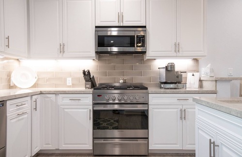 Entry room on 1st floor with sleeper couch, 48” TV, Murphy queen bed and full bathroom enters into single car garage and laundry room. 2nd floor with 55” TV, Fireplace, queen sleeper couch, kitchen island with sink, 4 barstools, dining area for 6. Kitchen is fully equipped for your convenience with table settings for 8, Keurig -Cappuccino coffee maker, Drip Coffee maker, spices, sugars, condiments.