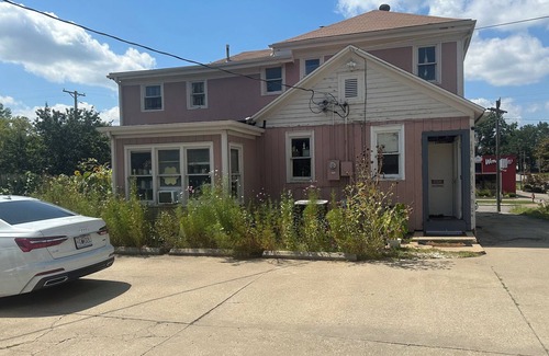 This is an old apartment building right in the center of Warrensburg, Missouri, across from Wendy's. It is eccentric and well kept. There's all the amenities- ping pong, full shared kitchen and plenty of private parking.