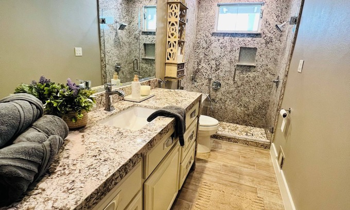 The whole group will be comfortable in this spacious and unique space. A space where you can relax and enjoy valuable time with loved ones and make some lasting memories, all while being secluded from the world in a paradise backyard. With fun activities and endless things to do with large groups.