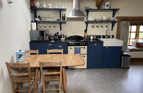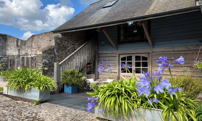 The Nest at Swallows' Flight is a luxury holiday barn with 100% five star reviews, set within the grounds of a beautiful cobbled farm courtyard dating back to the 1800's. The barn has a beautiful interior - mid century antiques, exposed beams, a hand built kitchen, luxurious bed with White company bed linens, grounds and gardens with a private hot tub to relax in. Rural views over farmland one mile and from the coast, beaches, pub and local farm shop with brewery. Very foodie area - lots of nice places to eat out. Stunning coastal path walks. Perfect for a couple to retreat, unwind and cosy up in!