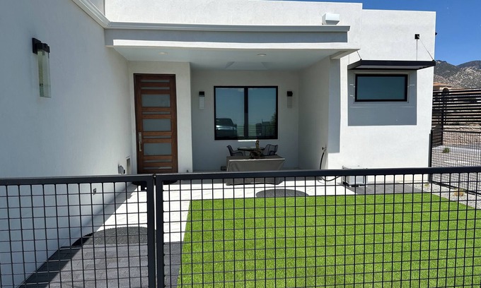 Whether for business or leisure, this property is perfect for a luxury Albuquerque getaway. Located in the desirable North Albuquerque Acres, this property offers city and mountain views. The 800 square feet of cozy beach-themed, pet-friendly comfort can easily accommodate up to four people. It features a private entrance to its one bedroom and one bath (with in-floor radiant heat), a family room with a king sleeper-sofa, dual climate controls, a 2-sided fireplace, 2 smart TVs, a walk-in closet, an enclosed courtyard, a private patio, a one-bay private garage, additional parking, a private BBQ grill, and a complete kitchen including refrigerator, gas stove & cooktop, dishwasher, microwave, toaster oven, Kuerig coffee maker, and reverse-osmosis system for the purest of drinking water. You will love the array of amenities and peaceful indoor and outdoor space. Located minutes from the Sandia Crest Tramway, our location offers easy access to I-40 and I-25 as well. Guests may access the home anytime beginning at 4pm on the date of check-in and throughout their stay by using the door code provided with your reservation confirmation credentials. We ask that all guests respect our home and the quiet hours of the community. Come and experience a true luxury getaway in a beautiful and tranquil setting.