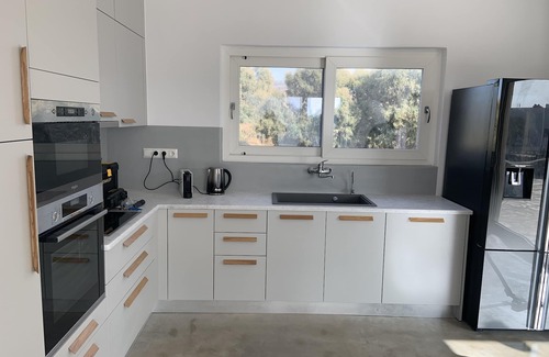 In addition to the swimming pool, the magnificent Plaka beach is a 5-minute walk away, where you can lay out your towel or hire a sun lounger and parasol. The villa is brand new, having been built in 2021.