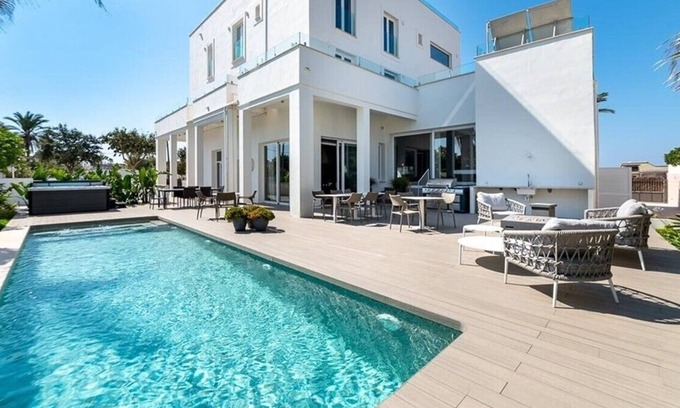 Luxury beachfront villa with pool is located in El Prat de Llobregat. Luxury beachfront villa with pool provides accommodation, featuring Bedding/Linens, Fireplace/Heating, Child Friendly, among other amenities. This Villa features Bedding/Linens, Fireplace/Heating, Child Friendly, to make your stay a comfortable one.