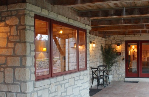 HomePlace features two casita-style guest suites, Cottonwood and Willow, both of which are nestled into the lower side of an authentic timber frame home. Each has a completely separate entrance with no interior door connecting to the larger home, making them comfortably private. As part of Prairiewood Tallgrass Preserve, guests have access to over 400 acres of native and restored tallgrass prairie, including a private dock on Wildcat Creek with awaiting kayaks, miles of hiking and walking trails, and Walnut Pond picnic area with its surrounding Bird, Bee & Butterfly Sanctuary.