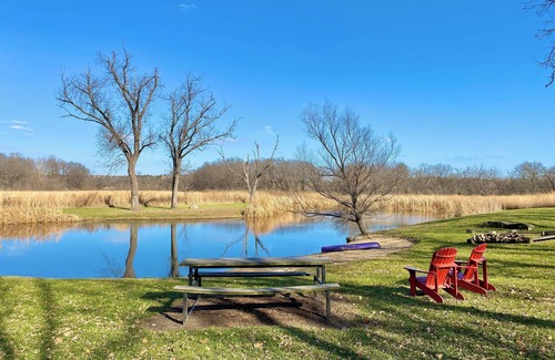 Tucked into a hollow on the eastern edge of Prairiewood's preserve, Cottonwood Suite exudes romance and abundance. Cottonwood has everything you need for a weekend getaway or simple overnight stay: spacious living quarters, spa-like features including oversized soaker tub, gas fireplace, comfort amenities including hospitality counter with Keurig, mini fridge, and microwave, patio with outdoor seating, and yard with fire pit, hammock, and grill — all with easy access to trails, fishing, canoeing, and kayaking.