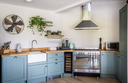 You will find a fully-fitted kitchen with a kettle, fridge, freezer, wine fridge, oven, microwave, toaster, dishwasher, coffee machine and more. Fully equipped with utensils, crockery, cutlery and glassware. Dishwasher tablets and cleaning essentials can be found in the kitchen, should you wish to use them.