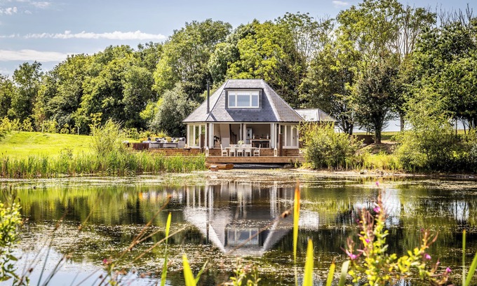 - Luxury Boathouse situated on a private lake, with panoramic views and a hot tub.