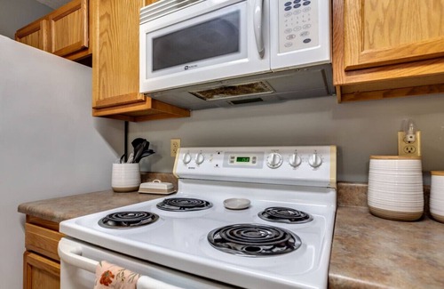 This apartment is newly updated to fit a modern style. It features one bedroom with a queen-size bed and a 43-inch flat-screen. There is one bathroom with a shower/tub combo, full vanity, and conveniently placed outlets that make getting ready a breeze. It has a spacious living room, small dining area, and a fully equipped kitchen. There is also an in-unit washer and dryer, free for guests to use. A total sleeping capacity of 4 guests when including the full-sized couch pull-out bed. Come explore our lovely little town!