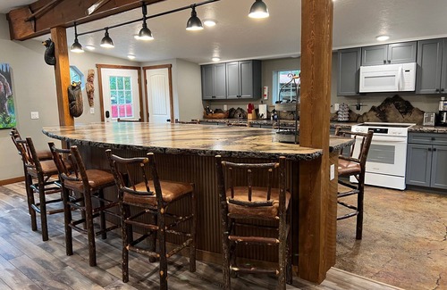*Hot tub coming June 1st 2025* Sit back and relax in our Luxury Bunkhouse Home. It doesn't matter where you look there are beautiful views of the Bitterroot Mountains and the back patio is just steps away from you enjoying your coffee as the sun rises and your wine as the sun sets with the faint sound of the river flowing. Want to visit the Lost Trail Ski Area in the winter and need a place to divulge in a warm cup of hot cocoa, ponder over the beauty of Montana while cozying up with your loved ones, you’ve found the place! We are located in the Bitteroot Mountain Canyon on the premier West Fork fly fishing river.