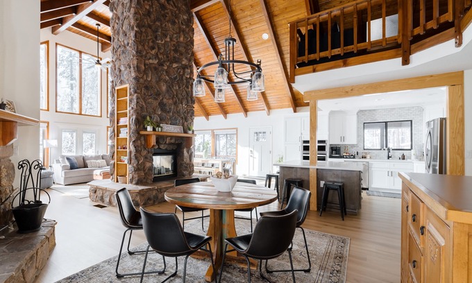 Escape to a tranquil cabin retreat in Strawberry, AZ, where adventure and relaxation intertwine. Immerse yourself in nature by hiking the picturesque Fossil Springs Trail, taking a refreshing dip in the refreshing waters of the Blue Ridge Reservoir, enjoying cool pine air, or exploring nearby Native American ruins. This spacious cabin can accommodate up to 16 guests, with a game room purchase option, cozy fireplaces, and a deck that offers breathtaking views of the surrounding mountains.