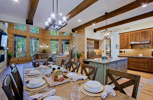 This family friendly lodge comfortably sleeps up to 10 guests with 2700 square feet, 4 bedrooms and 2.5 bathrooms. The back patio has a serene view of the pines of the Forest for you to enjoy from the deck while deer occasionally roam through the yard. There is plenty of room to unwind and bond with your friends and family inside with a full service kitchen. You are sure to make lasting memories here.