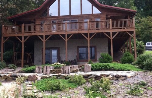 Cabin located at the Orchards at Greene Cove. Situated in an old Apple Orchard. Property has several apple trees waiting to be picked. Cabin has 2 Queen beds, 2 Twin beds with 2 full baths. Baths includes copper sinks with marble countertops. Kitchen has granite countertops. Stacked stone fireplace with high end gas logs. Pine hard wood floors. Cozy sitting loft to enjoy long range mountain views. Extensive manicured landscaping with large flagstone patio with stone stacked fire pit. Covered deck with lots of rocking chairs. High definition satellite with large flat screen TV in den and 1 TV in Queen bedroom. Abundant wildlife to include deer, turkey, etc.. Cabin located just several miles from trout stocked streams for fishing and the Blue Ridge Parkway. Nearby attractions include gem mining, antique and pottery stores. Gas Grill on porch for cooking.