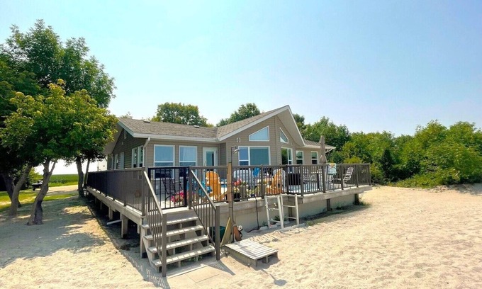 Escape to the serenity of Twin Lakes Beach and indulge in luxury at our lakefront cabin. Just 45 minutes from the Perimeter Hwy, this 4-season getaway boasts 1500 sq feet of comfort, 3 bedrooms, and 1 bath. Step onto the wrap-around deck or enjoy the outdoor shower after a day of adventure. With a pristine sand beach at your doorstep, relaxation awaits as you gaze upon the endless waters. Need equipment? Stand-up paddle boards, kayaks, and water toy rentals are available. Don't wait any longer—book your beachfront vacation now!