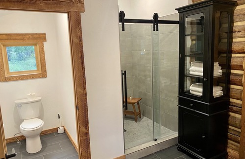 Tucked away in the woods on a private bison and highland cattle ranch you will find 3 rustic and luxurious cabins. Each cabin has been professionally restored and includes a king bed and full bathroom. WiFi and coffee included. No kitchen unit inside but there are nearby restaurants and an events barn on site that can be used for food preparation.