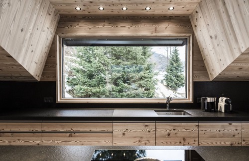 The modern architecture of the chalet, which is predominantly made of wood, blends in with the surrounding landscape and harmonises perfectly with the alpine scenery. The architectural elegance is also reflected in the interior of the exclusive Hideaway. Luxurious design is harmoniously combined with high-quality natural materials such as wood and stone and gives the Ourtls Pärg Chalet its simple, elegant ambience.