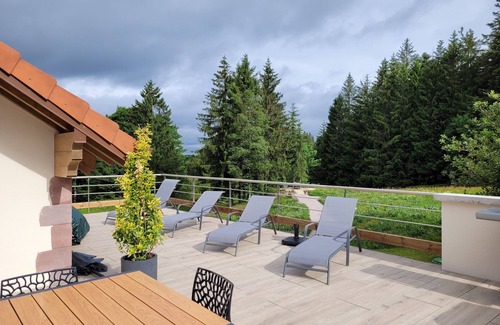 Nestled in Sapois, this 6-bedroom, 3-bathroom vacation home brings it all within your reach. Fans of nature and the outdoors will love being within a 5-minute walk of Ballons des Vosges Nature Park and 15 minutes by car from Lac de Gérardmer. You'll easily make the 30-minute drive to La Bresse-Hohneck or the 13-minute drive to Gerardmer Ski Resort.