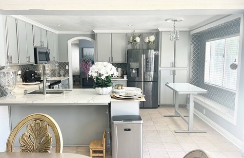 Make yourself at home in this 2-bedroom Bakersfield retreat. This brilliant house features a king bed and a queen bed, perfect for a cozy stay. Spacious two story home, approximately 2,000sq.ft. of living space. Nice kitchen with Prefab-Quartz countertops, stainless steel appliances, breakfast bar, dedicated workspace. Wet bar downstairs Perfect for entertaining. With WiFi, a washing machine, AC, and heating, guests will have everything they need for a fantastic getaway. Enjoy all that Bakersfield has to offer when you stay at our place. Convenient location, close 99Fwy.