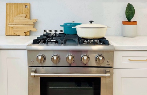 The fully equipped kitchen features everything needed to prepare your favorite meals, from an oven and microwave to a toaster and blender. A spacious fridge/freezer and dishwasher make meal prep easy. Enjoy quality cookware, dinnerware, wine glasses, utensils, and a coffee maker to start your day right. The dining table seats six and doubles as a game table with a selection of board games.