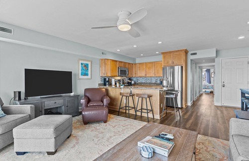 This unit has many amenities to make your beach vacation very enjoyable. We have DirecTV with DVR, HD signal and you will watch all that on a 55" LG OLED 4K smart flat screen TV. The unit also includes wireless high speed Spectrum internet. The condo will sleep up to 4 and has a full kitchen with new appliances including ice maker, two new full bathrooms, washer/dryer and a new heating and cooling system. Assigned parking at the building for two vehicles. Easy beach access is next to the building.