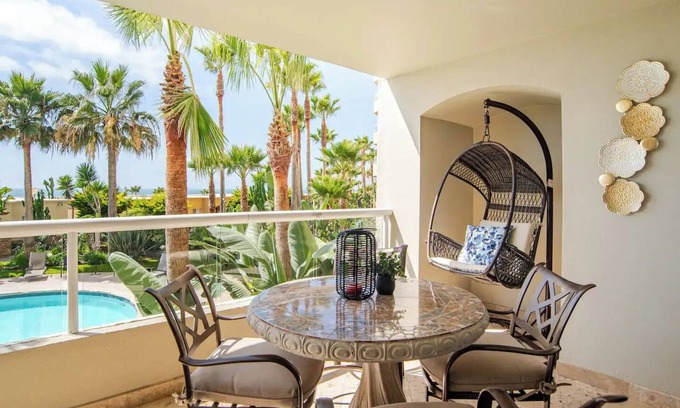 Our favorite place is the balcony overlooking the pool and the Pacific Ocean.