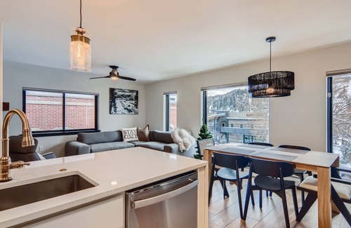 Beautiful remodeled condo in downtown Steamboat. Enjoy the convenience of walking to any of the downtown restaurants, bars and shopping that Steamboat has to offer. The views from this 3rd floor, 2-bedroom condo are worth the two flights of stairs. You have direct views of the Howelsen Hill ski jump across the Yampa River, and can enjoy watching people ski and ride day into night. Brand new high end furnishings and well-stocked kitchen will be there for you after an amazing day on the slopes. One dedicated parking spot and one block away to the free bus which will get you around town or over to the Steamboat Ski area.