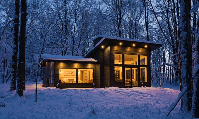 This contemporary cabin offers unmatched luxury, privacy and scenic beauty, just 10 minutes from downtown Wausau and 20 minutes from Granite Peak Ski Resort. Offering a spa bathroom, full kitchen, beautiful living area, panoramic bedroom, private patio, and screened-in cabana, the Owl Ridge Cabin is arguably the nicest vacation rental in the Midwest! The Owl Ridge Cabin is a destination unto itself!