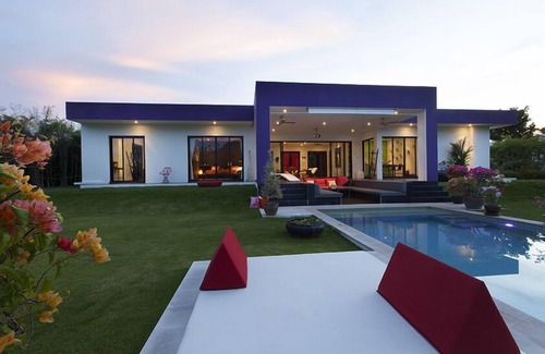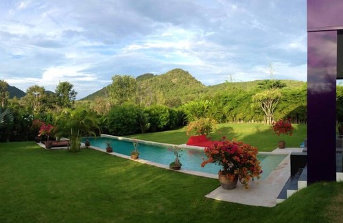 One of its kind contemporary and luxury villa located in the authentic resort of Hua Hin, the Thai Royal residence, 2h30 south of Bangkok. 15' from the beach and its famous kite surfing areas, next to one of the top Asian golf, our hidden paradise is a unique well being luxury retreat: organic restaurant with talented thai chef, spa with highly professional body treatments, gym club and its full fitness equipment, and a tennis court are available to you, 5mn walking distance from our villa.