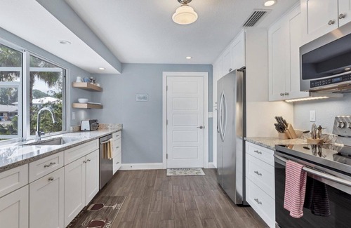 Relax in the newly updated home with a new kitchen, bathrooms and floors. Every detail of the updated home has been addressed, creating a comfortable and welcoming space for the perfect Florida stay.