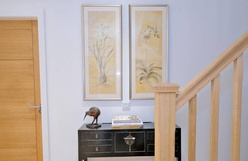 Ground floor has 1 bedroom (King bed with en suite) & 2 bathrooms. There is also a utility room & glass corridor/seating area.