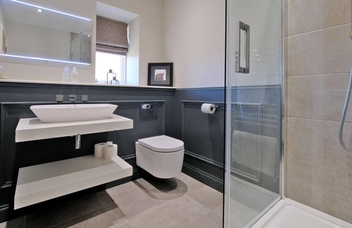 The open plan kitchen / diner / Living area is the perfect space for entertaining. It is fully equipped with a Range cooker, dishwasher, fridge, microwave, pans, cutlery and glasses. There is also a wood burning stove within this area.