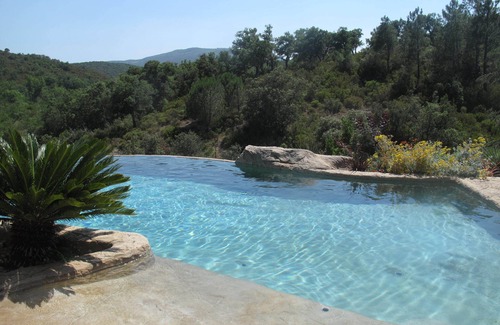 The serenity of a haven preserved in the bush with all modern amenities and an organic and gourmet catering service based on products from the garden. The country estate of fifteen hectares offers treks through the forest of cork oaks and along the Saint Amans river as well as panoramic views of the peak of Canigou and coastline.