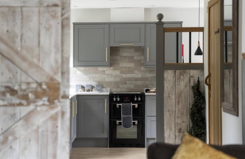 A stylish two bedroom property with a great outdoor space offering; outdoor festoon lighting, charcoal BBQ grill, comfy outdoor sofas, lavender and herb filled planters and private hot tub. Luxurious bedding, linen and towels provided for each unique bedroom. Board games and cosy blankets in front of the log burner for winter nights. Free WIFI and Smart TV with netflix ensures there's entertainment for everyone. Large, well appointed kitchen with fridge/freezer, induction hob and oven and dishwasher. Open plan kitchen dining area with large bespoke made Oak dining table and feature pendant lights. Comfy leather sofas to settle in to for long conversations by the wood fired burner. Washing machine, airer and iron provided for all eventualities. Dogs are welcome subject to approval by the owners and adherence to terms, 1 dog per booking only.