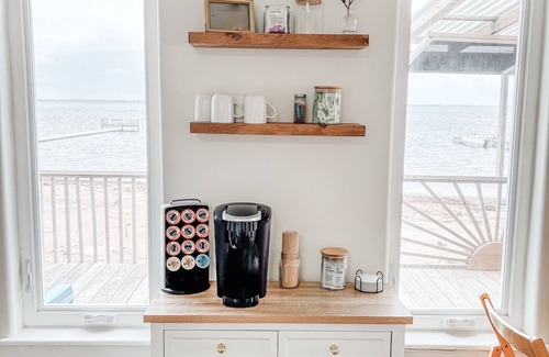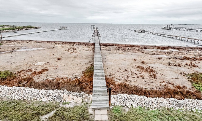 Perfect getaway for friends, couples or families. Bay front property! Great for fishing and bird watching. Enjoy sleeping on luxurious bedding. Wake up in the morning to the sound of waves crashing on the shore. Enjoy our complimentary coffee on the deck overlooking the Laguna Madre Bay. Our backyard is considered protected wetlands, there are many different types of coastal birds and wildlife to discover. Walk along the pier to a private dock for great fishing. Drive 15 minutes over the JFK Causeway bridge to North Padre Island. There you can find souvenir shops, restaurants, and lots of beach access. You can also head the other direction toward the city of Corpus Christi for tons of shopping, restaurants, and entertainment. A trip to the Texas State Aquarium downtown is a must! After your fun, adventure-filled day, come back to the luxury cottage to enjoy cooking dinner in our full kitchen and drinks on the patio as the sun sets on the bay.