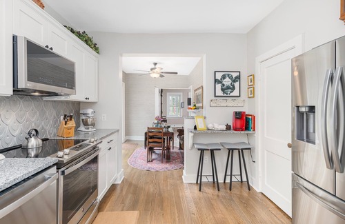 The Cottage at The Grange is located on the peaceful Potowomut River. It is a beautiful and newly renovated 2 bedroom (king, 2 twin beds) / 2 full bath home with all the modern amenities and conveniences expected from a luxury short-term rental while maintaining the historic charm of this colonial estate. Cook a gourmet meal in the stocked kitchen or BBQ on the deck. Situated on 11 pristine acres enjoy private tennis/pickleball courts, kayak access to Greenwich Bay and much more!