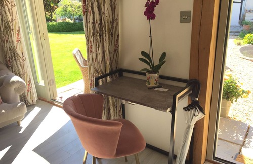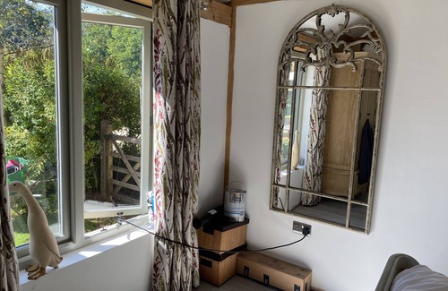 Oak framed high ceiling luxury cottage . Huge French bed fully fitted kitchen large TV and soft velvet sofa . Large walk in shower and all fully equipped for a luxury stay . Close to South Downs , NT properties and Goodwood
