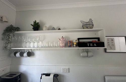The bedroom has a comfy bed to relax at the end of the day, or enjoy the weekend with friends and relax in the private back yard overlooking the valley, enjoying the firepit (ask us about firewood). A full bathroom and laundry is on offer for those longer getaways. We welcome you to enjoy our property, maybe pick some fruit from the abundance of trees, or gather some macadamias from the orchard. We welcome you.