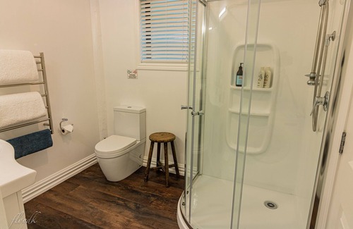 Newly refurbished guests accommodation shares common grounds with owners house.