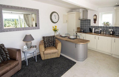 Our gite has been fitted out to the highest standard, with a french style to the furnishings and decoration. The Rococo inspired bedroom has a fabulously comfortable king-size bed and plenty of hanging and drawer space, plus an adjoining, characterful en-suite with large shower. In the cosy sitting area, there are two leather tub-chairs facing a wall-mounted flat screen smart TV with DVD player and Freeview box plus Netflix. The sitting and kitchen area is light, bright and sun-filled due to the double-width french doors which open directly out onto the private terrace. With a 'table for two' right outside, you can enjoy breakfast on those sunny mornings, or relax in the shade on the large cushioned sofa nestled amidst the honeysuckle and jasmine. The panoramic views are simply stunning and the sheltered, flower-filled courtyard is a real sun-trap. The 10x5m private pool is right next to the gite, and has a large decked area with sun-beds and parasols, plus another delightful eating area that makes the most of the amazing views.