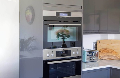 The ultimate space to unwind and relax! Open up the bi-fold doors and let the sea breeze in while you relax on the huge, designer sofa.