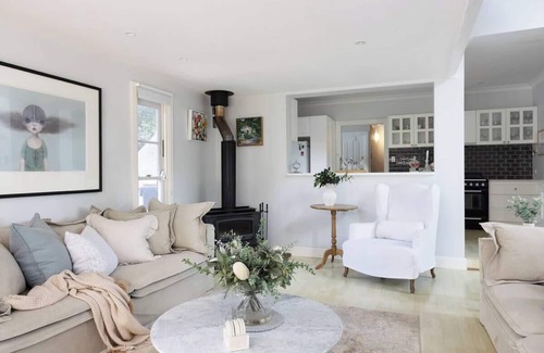 Step inside and be welcomed by soaring vaulted ceilings, majestic feature windows, and interiors filled with natural light. Designer furnishings and heritage touches blend effortlessly with modern luxuries, while a large wood-burning fireplace crackles in the main living space—perfect for curling up with a wine or book during the cooler months.