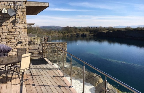 Boasting amazing views of the Yorkshire Dales, the Lakeland Fells and the spectacular sunsets over Morecambe Bay, Jackdaw Quarry Lodge is one of a handful of stunning eco lodges set on a hillside above the clear, blue water of Jackdaw Quarry, near Carnforth, Lancashire. Jackdaw Quarry is also home to the UK's premier scuba diving centre and PADI dive school. Guests have the opportunity, should they so wish, to sample scuba diving for the first time or further develop their existing skills (visit the Dive Site for more details). Scuba diving aside, there is so much to enjoy at Jackdaw Quarry 'above the water'! The local area is perfect for cycling and there are many delightful walks available from the door. Jackdaw Quarry's excellent location means easy access to the Lakes and Dales (e.g. Windermere is just 30 minutes drive away).