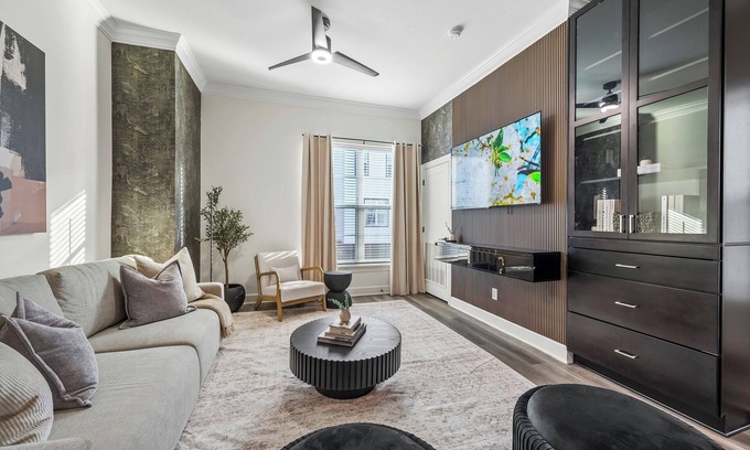 ✔ Spacious Living Room – 65” Smart TV & Pull-Out Couch