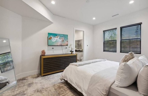 Step inside this sophisticated sanctuary, where high-end finishes, designer furnishings, and modern amenities abound. Every detail has been thoughtfully curated to enhance your experience, from the lavish bedrooms with private living areas to the expansive common spaces equipped with state-of-the-art entertainment systems. Marvel at the large outdoor pool featuring a waterslide, ideal for post-wedding relaxation or fun-filled receptions under the stars. With ample dining areas and versatile spaces, this estate caters to every aspect of your celebration while also offering tranquility and privacy when needed.