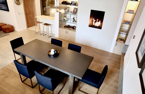 Our space is a three bedroom, two bathroom professionally designed and decorated apartment/condo in a mixed-use building on the lower level. It has gorgeous high ceilings in a modern loft style and is perfectly appointed with modern contemporary furnishings. Our space is located within one block of Sierra Madre's quaint town square restaurants and shops, and a short walk from hiking trails and parks.