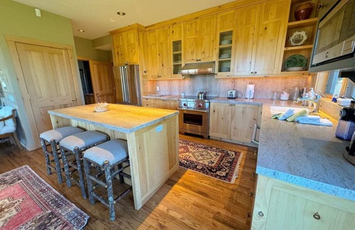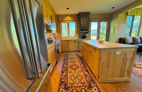 Located a short distance from Grand Targhee, the Snake and Teton Rivers, and Yellowstone and Grand Teton National Parks, there is easy access to world-class skiing, fishing, mountain and road biking, and hiking. Mountain golf is nearby too, as are the charming restaurants and shops of Driggs (about 5 miles) and Victor (about 12 miles). If you decide to stay in, guests can take advantage of the home's many amenities including a log-burning fireplace, fully-stocked kitchen, televisions with streaming capabilities, three large sitting areas, and more.